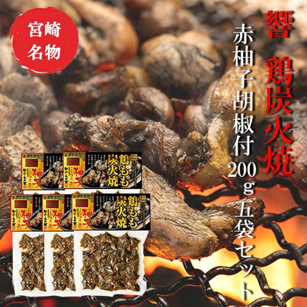 響 鶏もも炭火焼 赤柚子胡椒付200g×5袋セット 美味しい お歳暮 つまみ 宮崎 鶏炭火焼 送料無料