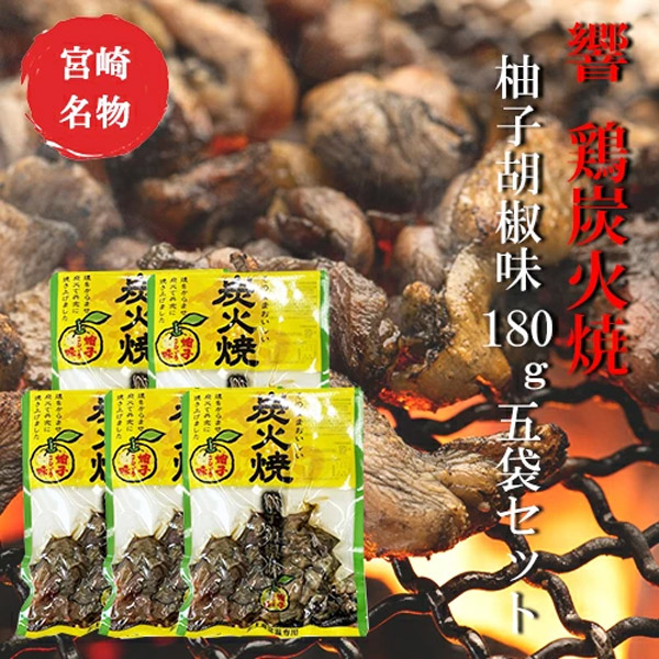 響 鶏炭火焼 柚子胡椒味180g×5袋セット【美味しい】【お歳暮】【つまみ】宮崎 人気 鶏炭火焼 送料無料