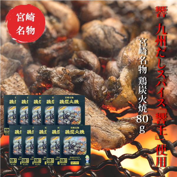 響 鶏炭火焼 80g × 10袋セット 九州だしスパイス「響王」使用! 煙をからませながら炭火で焼きあげた炭火焼真空パック ネコポス送料無料