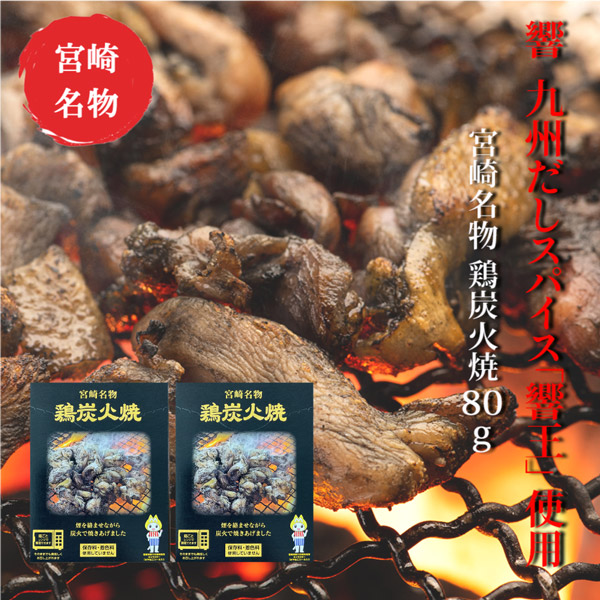 響 鶏炭火焼 80g × 2袋セット 九州だしスパイス「響王」使用! 煙をからませながら炭火で焼きあげた炭火焼真空パック ネコポス送料無料