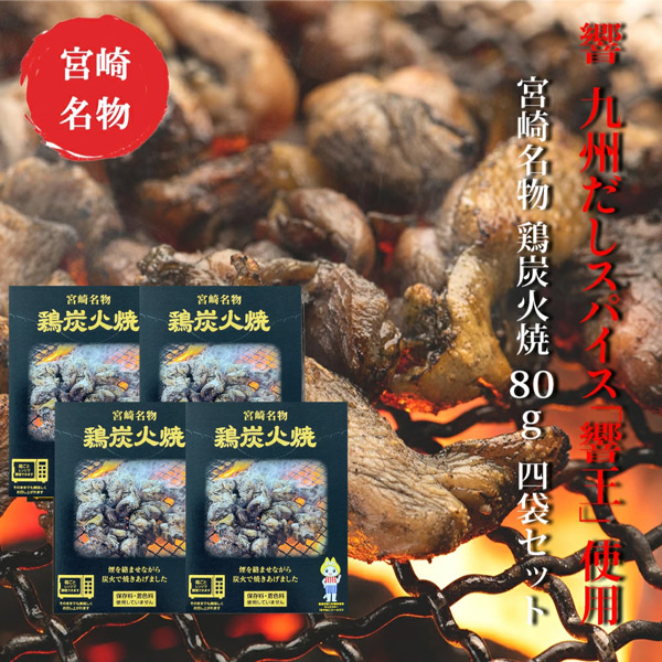 響 鶏炭火焼 80g × 4袋セット 九州だしスパイス「響王」使用! 煙をからませながら炭火で焼きあげた炭火焼真空パック ネコポス送料無料