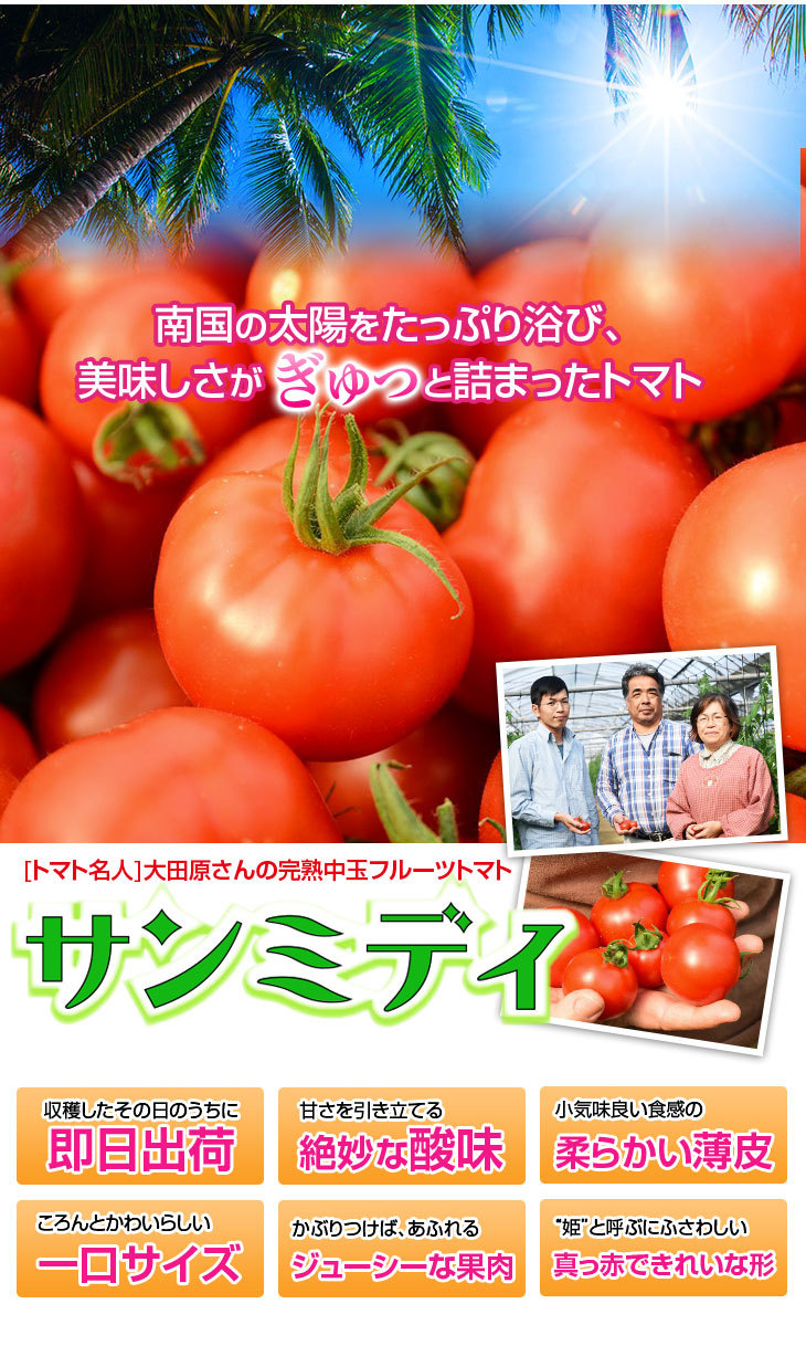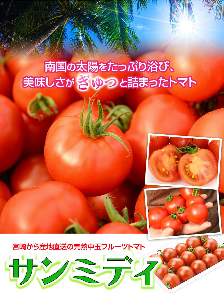 【順次発送中】【 サンミディ 1kg 】 宮崎県産完熟中玉フルーツトマト 濃厚なコクと旨味が癖になる産地直送の高級トマト!