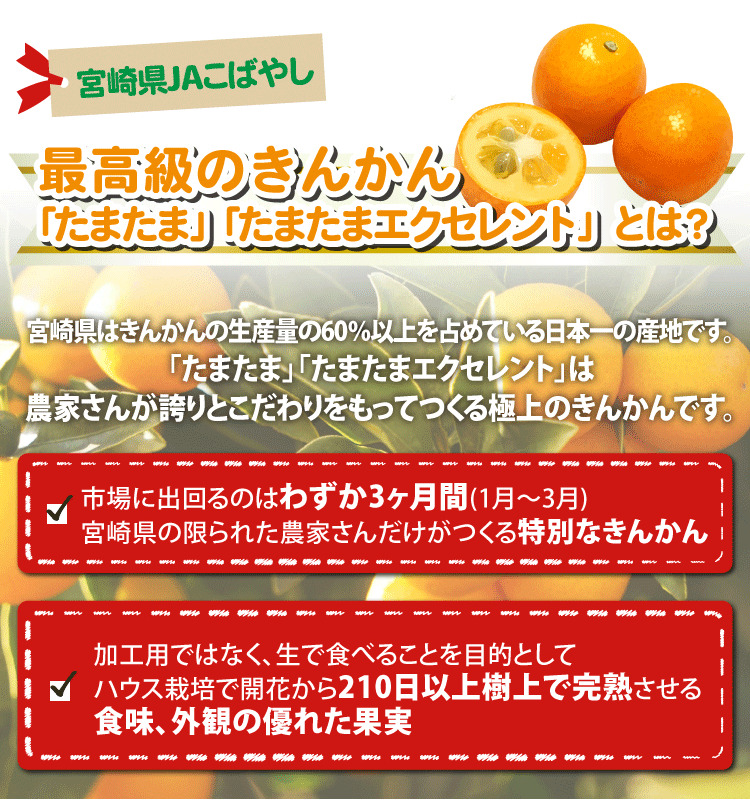 内容 宮崎県産 完熟きんかん〈たまたま エクセレント 2Lサイズ1kg〉