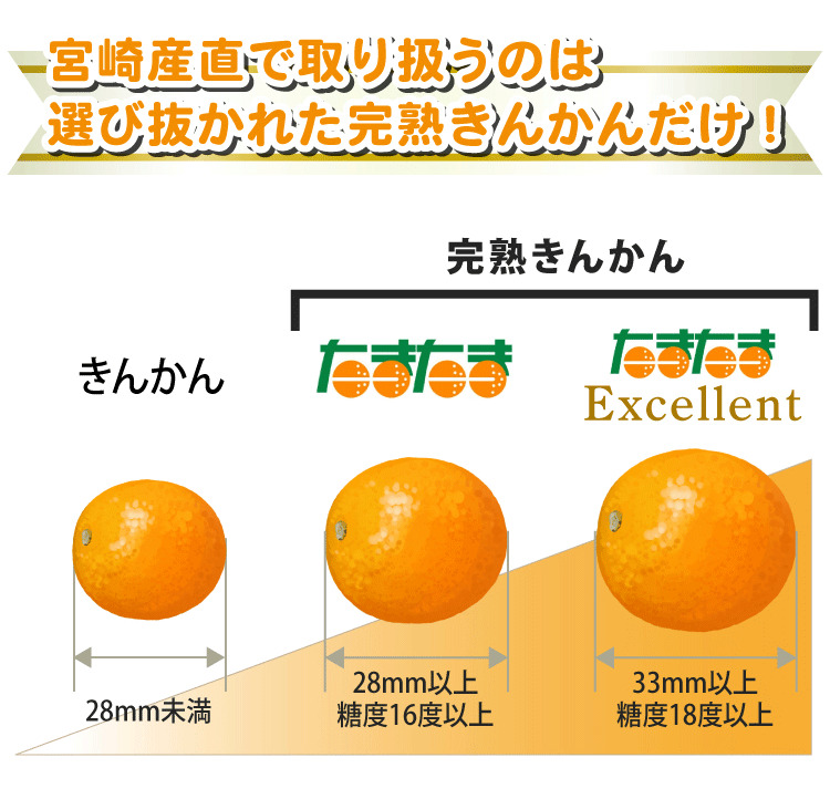 33mm以上・糖度18度以上の選び抜かれた完熟きんかん!選び抜かれたエクセレントな美味しさです!