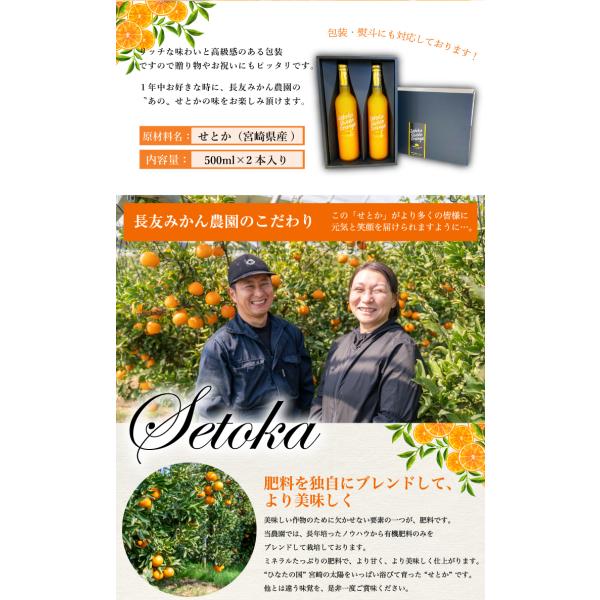 【送料無料】宮崎県産せとか使用した100%生絞りジュース せとかの皮を少し入れる事で、ほのかな苦味がアクセントとなり、せとか本来のコクを楽しめる大人の味に仕上げました。