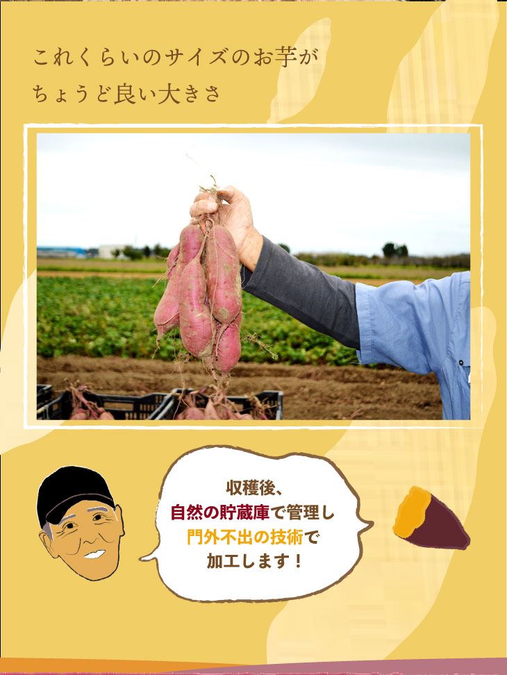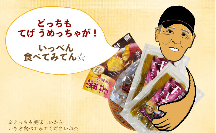 蜜がたっぷり染み出す蜜芋と、しっとりとした優しい甘さの干し芋をお楽しみください。