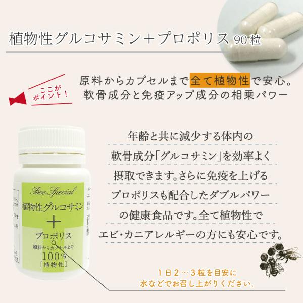 【西澤養蜂場】植物性グルコサミン+プロポリス(90粒) 原料からカプセルまで100%植物由来のため、アレルギーが心配な方も安心。