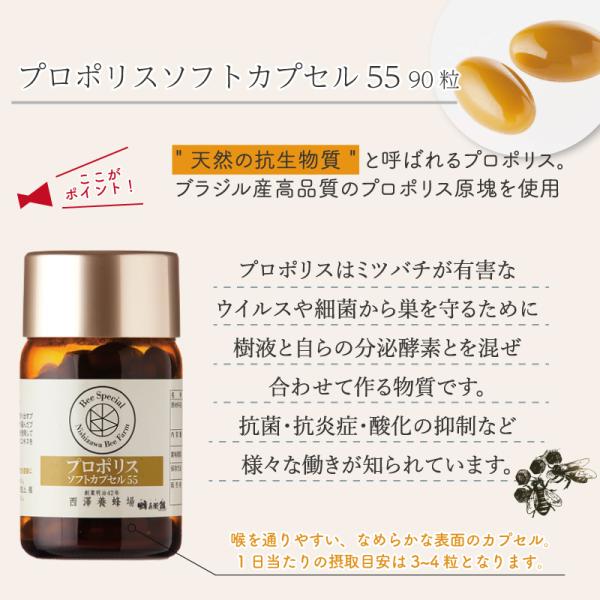 【西澤養蜂場】プロポリスソフトカプセル55(90粒) 高純度ブラジル産プロポリスを使用。飲みやすい滑らかな表面のソフトカプセルです