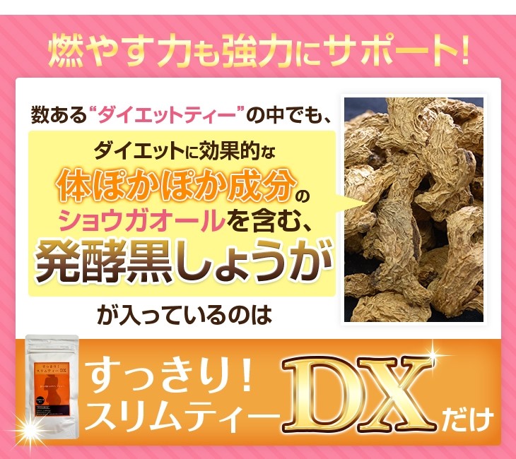 すっきり!スリムティーDX6袋セット★溜め込まずに翌朝すっきり!発酵黒生姜入り★ダイエット茶 送料無料