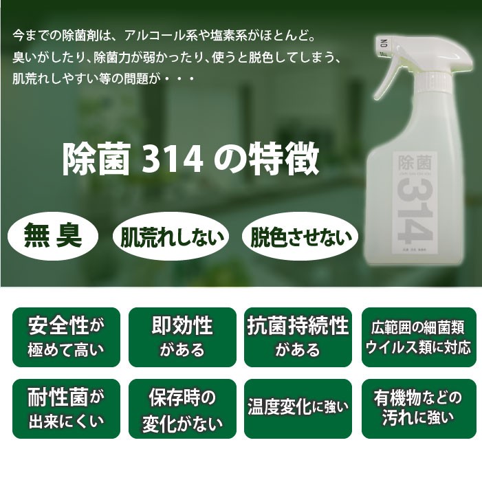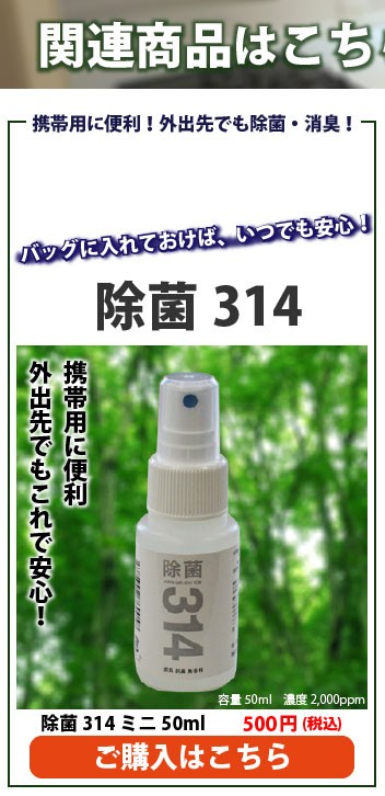 【除菌314ミニ】50ml 314種類の菌やウイルスを除菌する! 除菌・抗菌・消臭・無香料 肌荒れしない