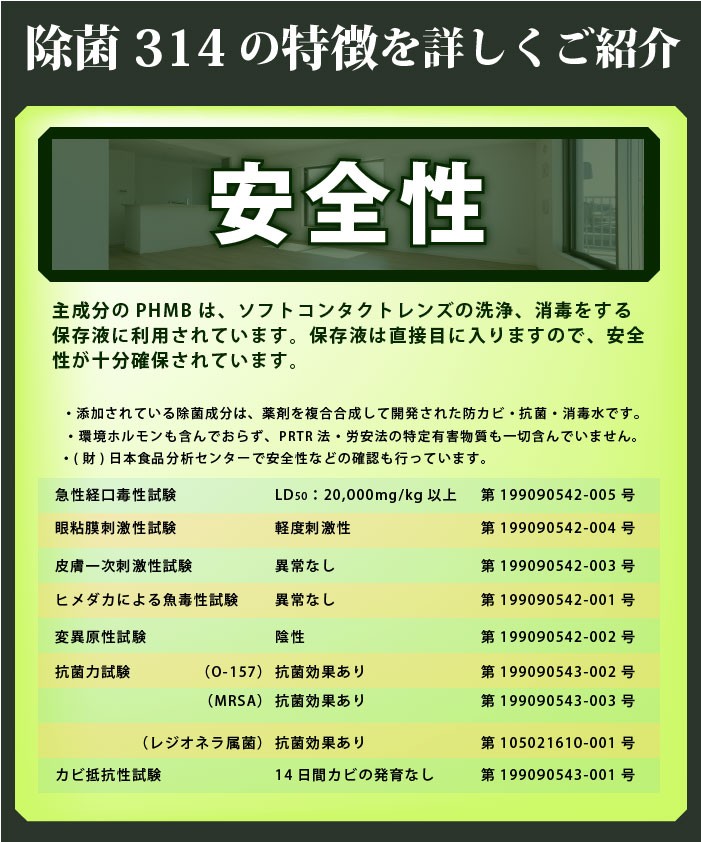 成分:精製水、2-n-オクチル-4-イソチアゾリン-3-オン、ポリヘキサメチレンビグアナイドハイドロクロライド(PHMB)